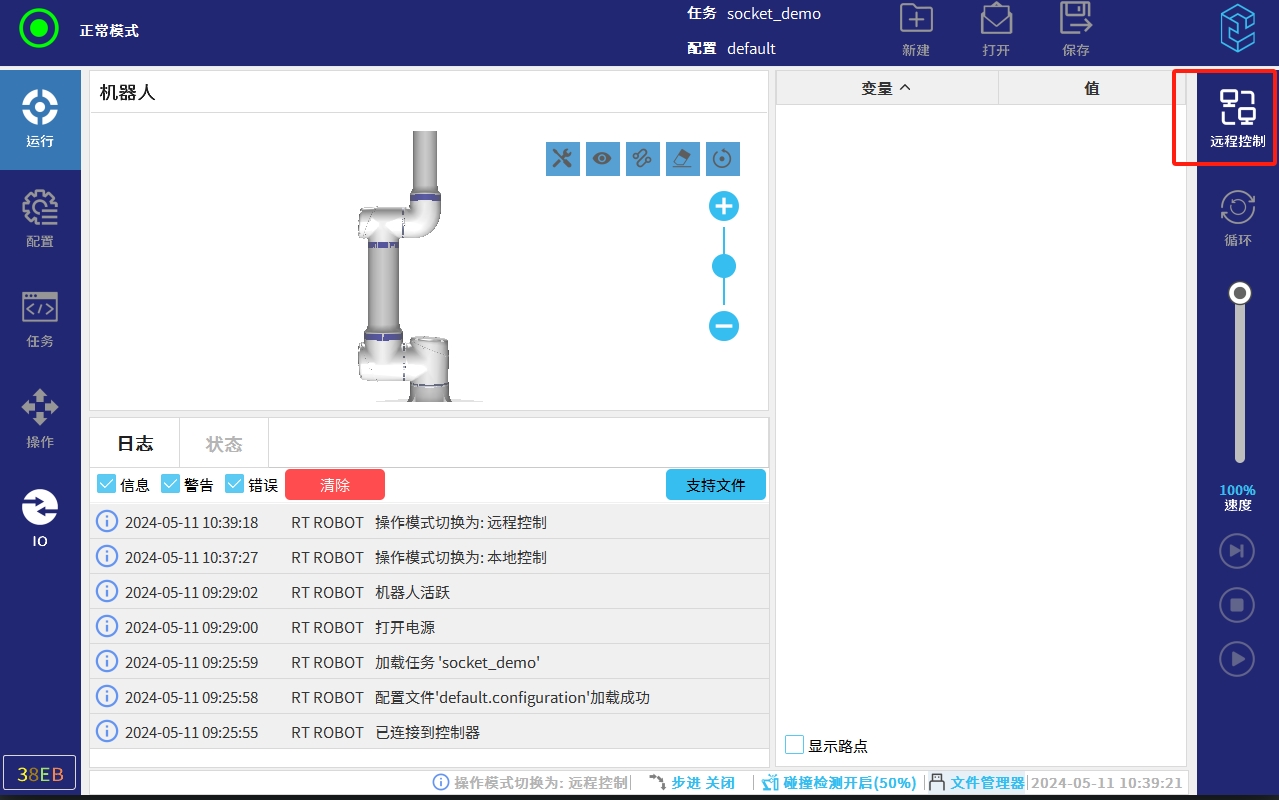 外部设备可以往30001直接发送机器人脚本,机器人处于远程模式,机器人就会运动。