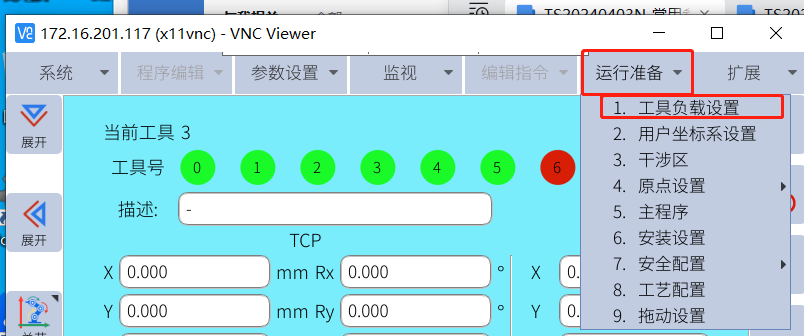 点击运行准备---工具负载设置,用户可以同时设置8个不同的工具使用(0-7)。