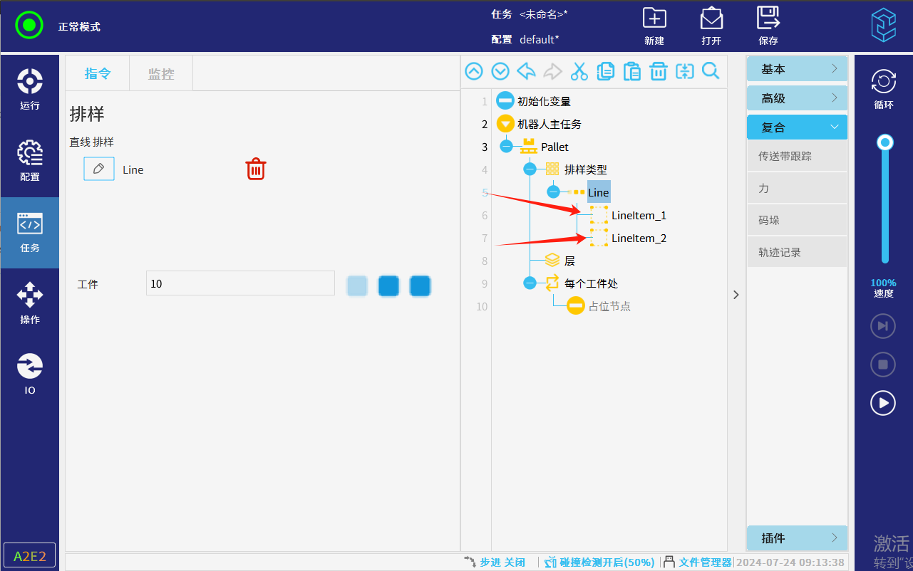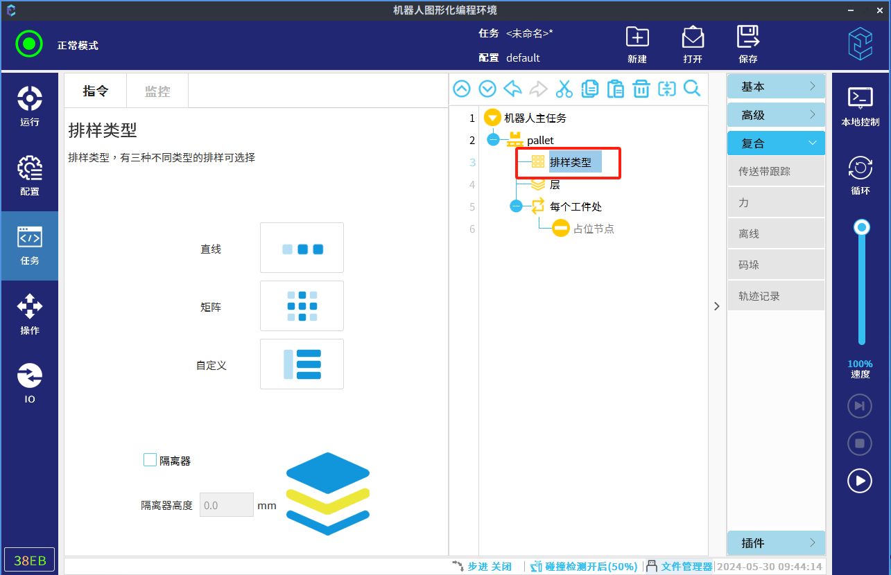 码垛支持用户自定义排样类型、层数、参考点等,进行码垛和拆垛任务的编写。