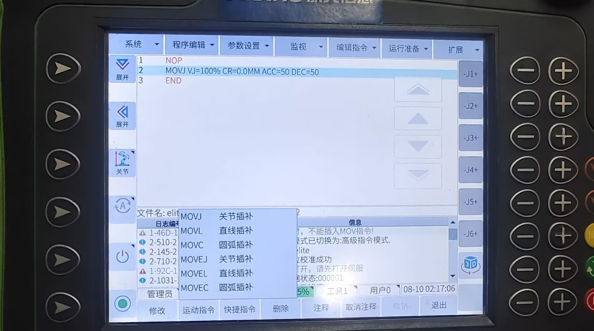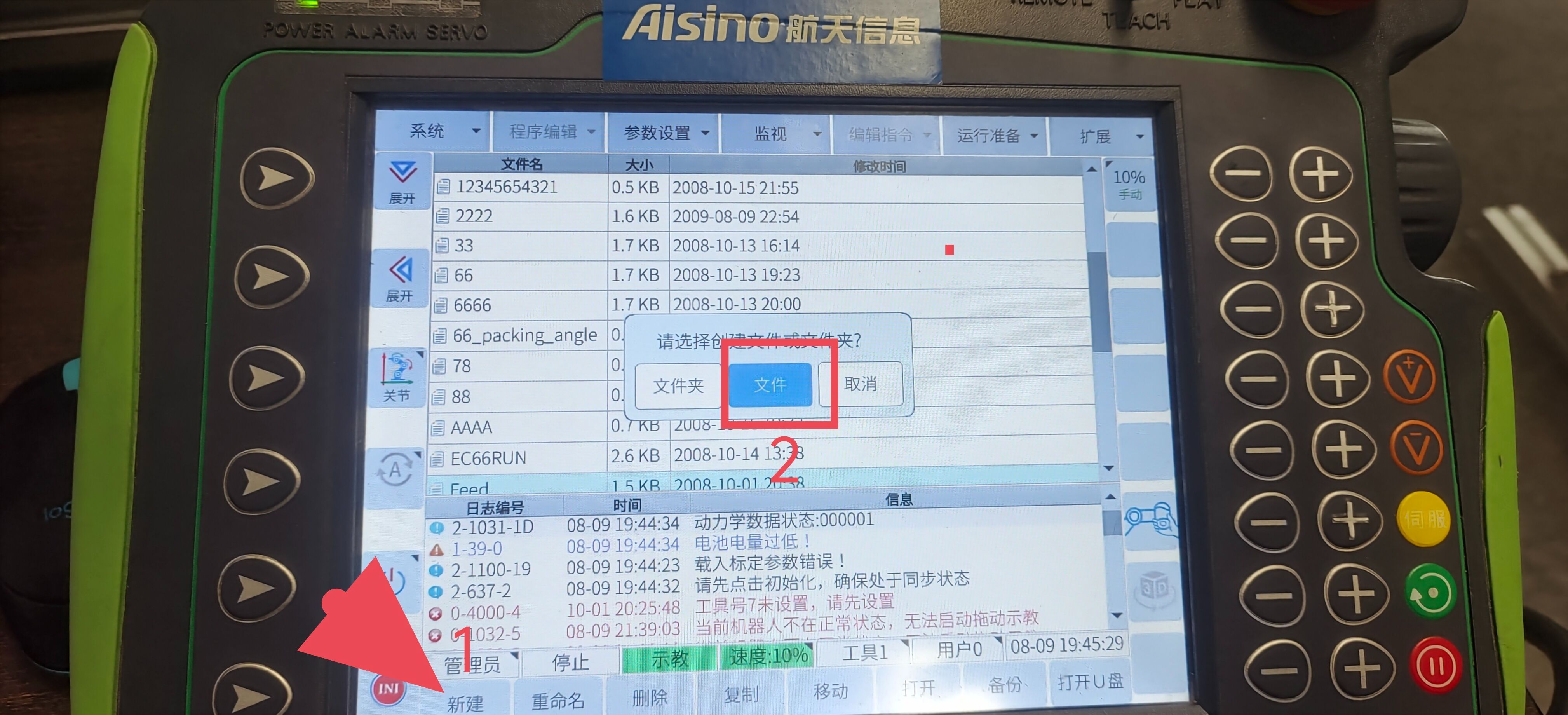 在示教器主页面下点击左下角新建-文件-输入文件名-选择并打开