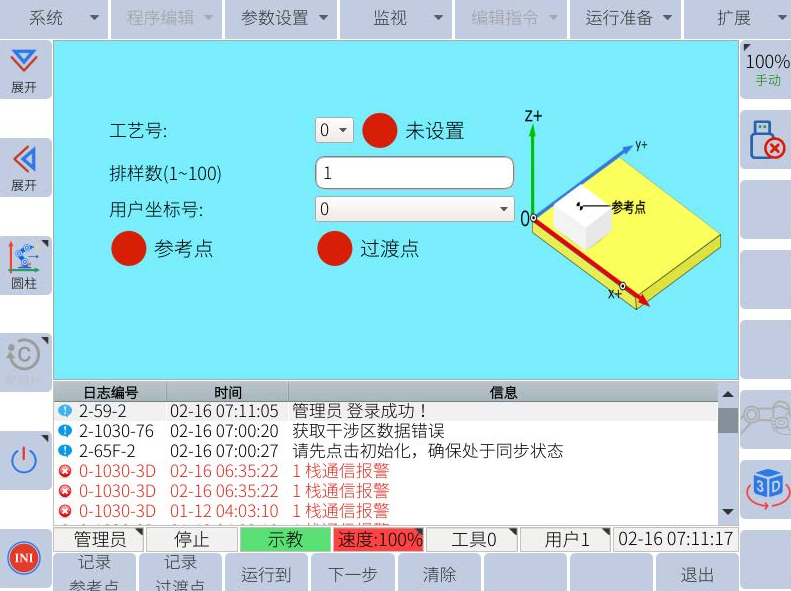 1. 进入管理员模式,选择运行准备-----8. 工艺配置-----勾选码垛,点击左下角的设置,重启后,在右上角的扩展里面会有码垛工艺配置。