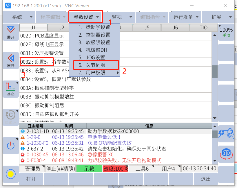 参数设置-关节伺服-打开0032参数写入5进入保存.