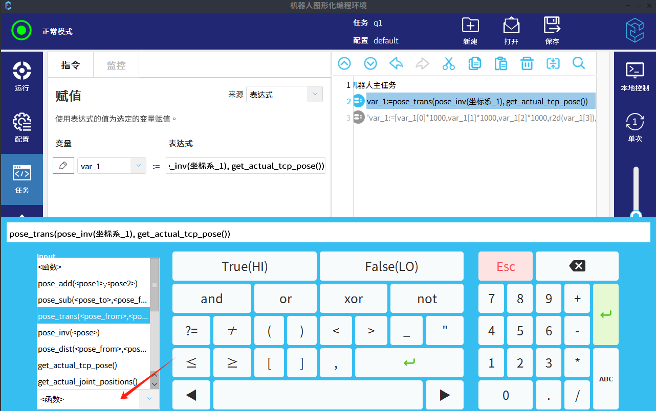 根据位姿变换指令,将user坐标系(坐标系_1)下的位姿(下方示例中var_1)转换成base坐标系下的位姿(var_2)