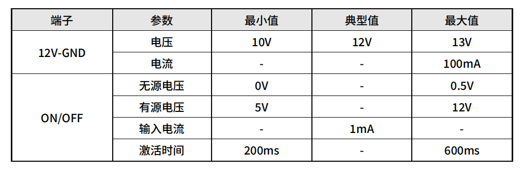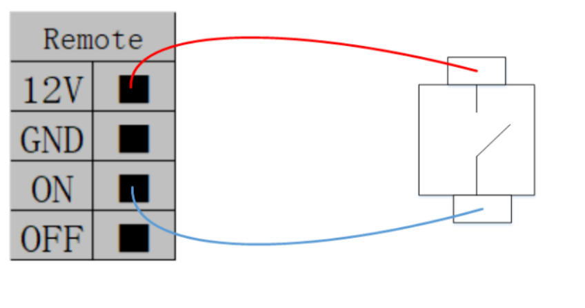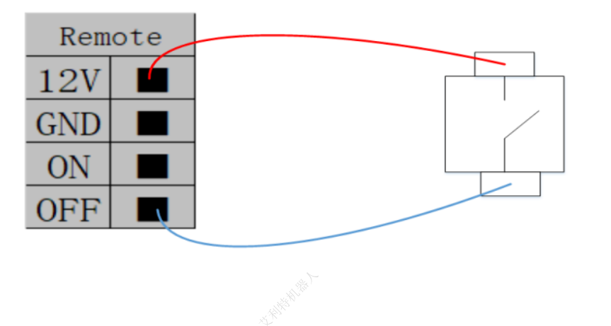 远程 ON/OFF 控制提供 12V 辅助电源,在控制箱电源打开,且未启动控制柜的情况下。只需要把线接出来即可实现远程开关机。