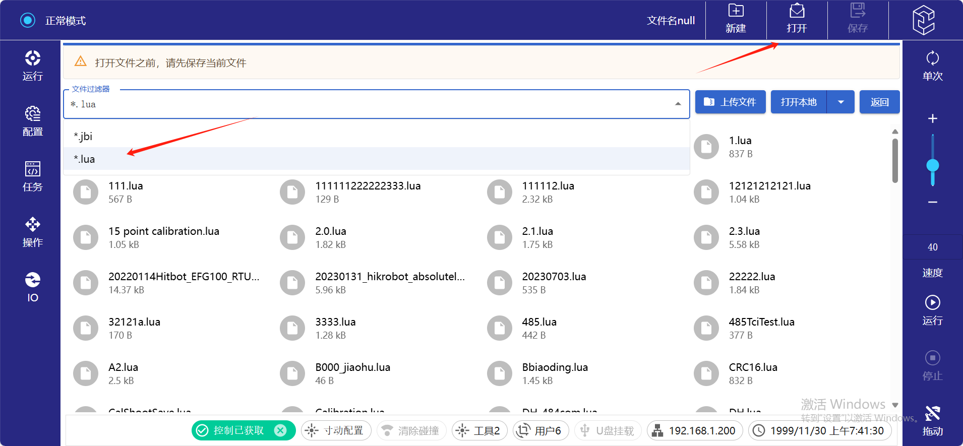 2. 点击新建,选着LUA文件,命名文件后即可编程LUA。