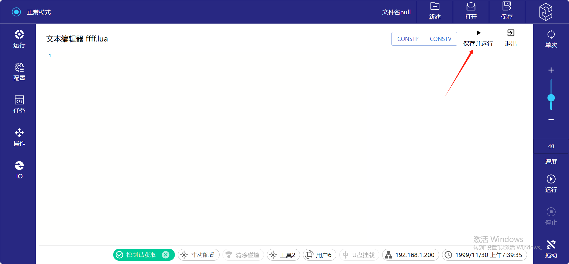 3. 程序编辑好后可以点击保存并运行进行测试。