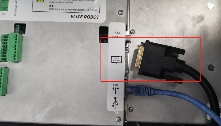 2.1.1 检查控制柜上面的示教器插头是否松动,并紧固。
