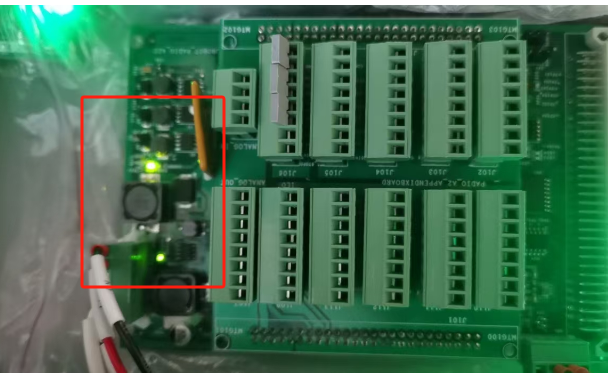 测量IO板的24V电压是否正常,如果没有电压请检查24V电源模块,48V电源是否正常,如有异常请更换异常电源模块