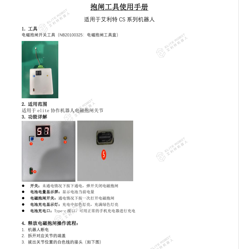 本篇文档介绍当前CS系列机器人的抱闸类型、查看当前抱闸类型及松开抱闸的方法