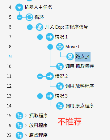 在程序中多次使用重复信号点位,如抓手程序,吸盘程序,因子程序无法调用子程序,建议使用文件夹,具体情况请看下图