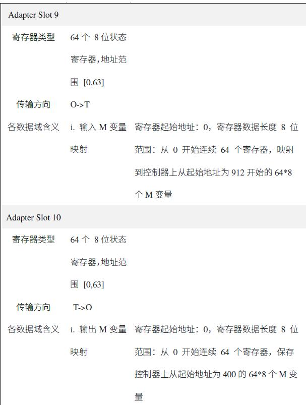 1、米兰·(milan)中国机器人EIP通讯支持10个适配器插槽,对应不同功能,具体请查看米兰·(milan)中国机器人EC系列通讯手册中第4章Ethernet/IP接口与协议。