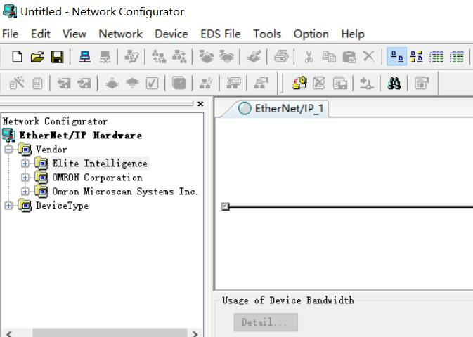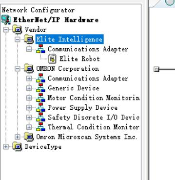5、  在文件夹OMRON中的Communications Adapter找到对应的plc型号的文件,双击文件既可加入中间栏,在从Elite Intelligence中找到机器人eds描述文件,双击文件既可加入中间栏
