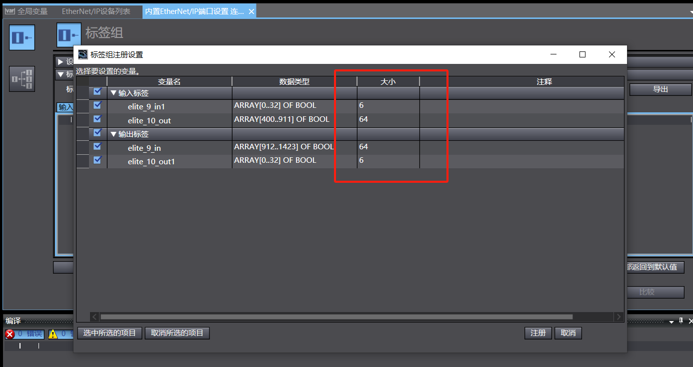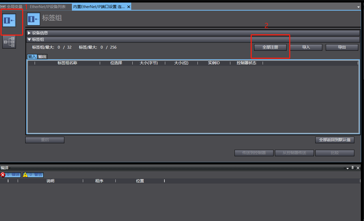 13、  进入内部 EtherNet/IP 端口设置,选择标签组,点击全部注册
