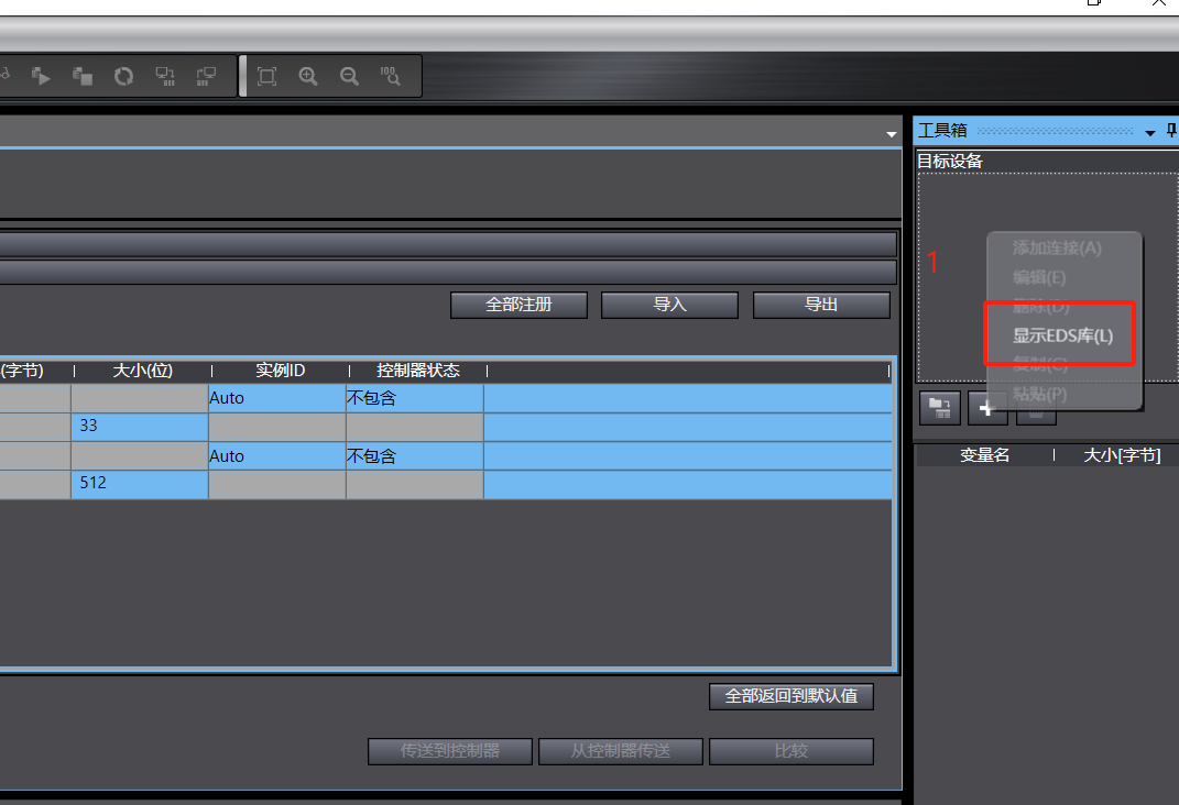 15、  注册完成后点击工具箱空白处,点击显示 EDS 库,点击左下角安装,找到机器人 EDS 文 件安装,成功后页面出现Elite Intelligence