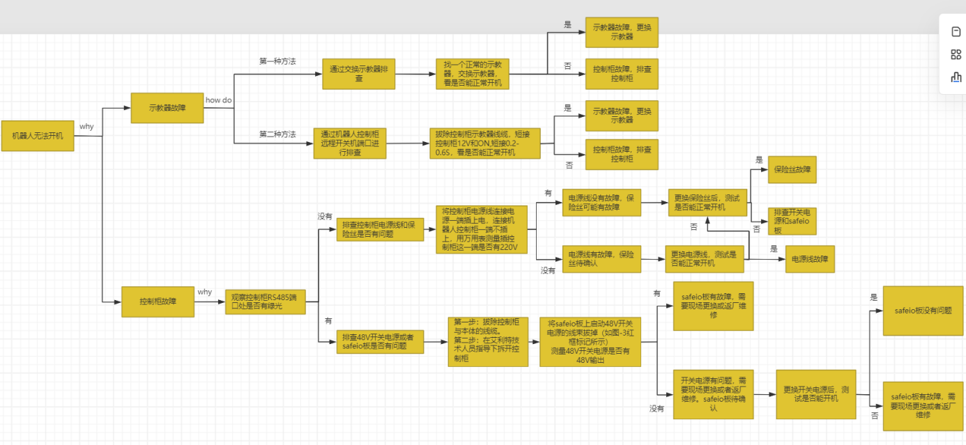 在客户现场很有可能会出现机器人无法开机的问题,出现这种问题的原因有可能是客户人为导致的,也有可能是设备质量问题,所以我们要善于去排查是什么问题导致的机器人无法开机。