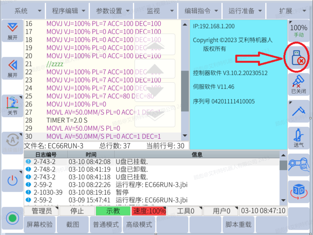 1、  示校器程序运行过程的后台数据;包括在示教器上按了哪个按键,光标选中了哪一段程序。