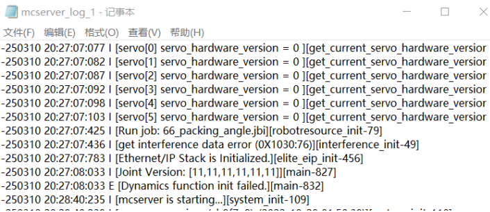 打开U盘→打开rbctrl文件夹,找到mcserver文件,可以用记事本或者Excel打开。该文件中保存有机器人所有的日志信息。