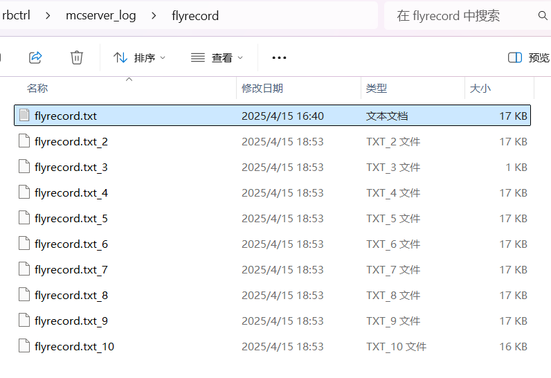 2、  拷贝出的日志只有mcserver-all,没有flyrecord文件和runlog文件?