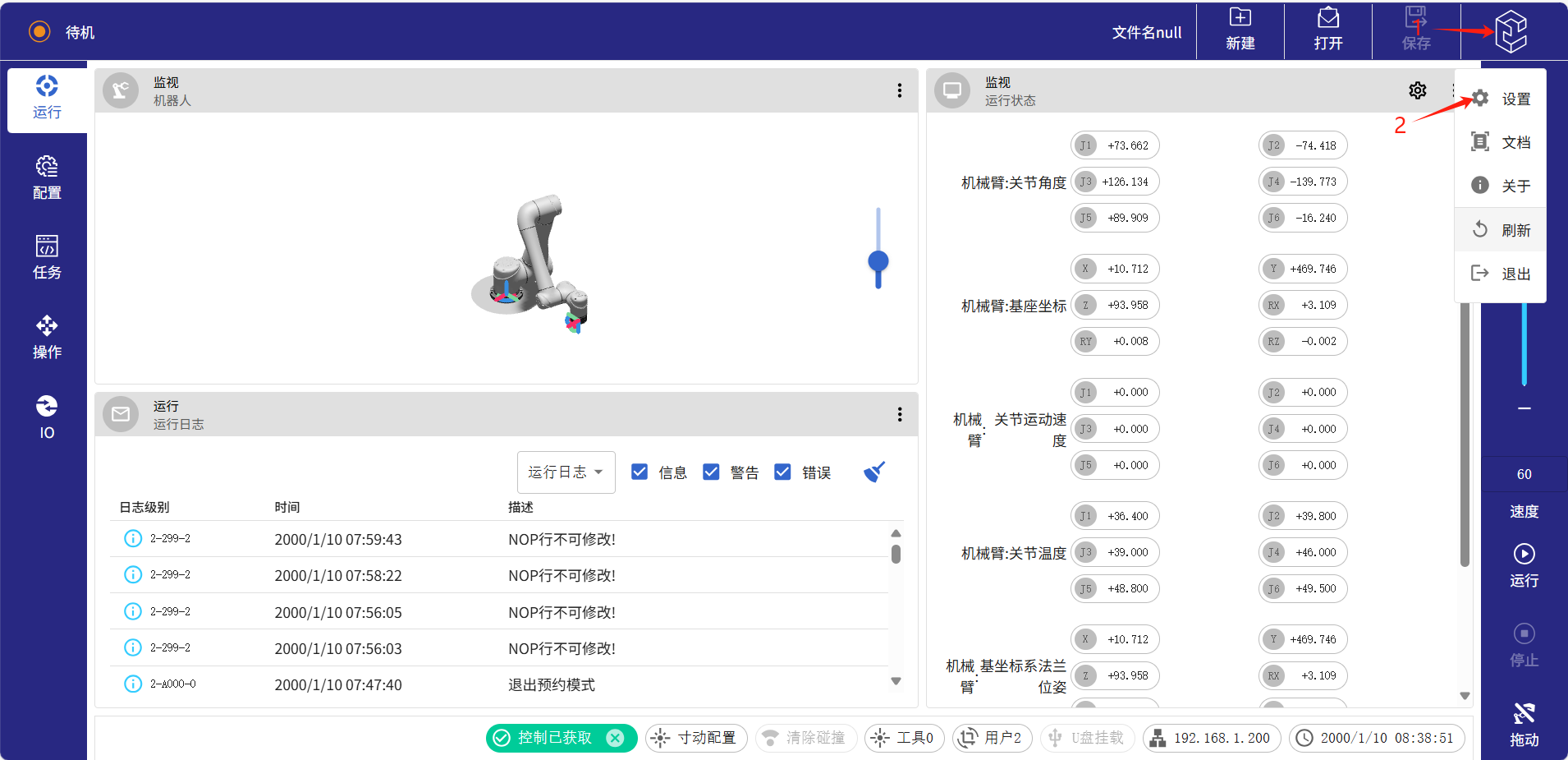 ● 先登录网页版示教器,具体步骤可看下面文档【2.2 笔记本电脑连接网页版示教器】操作步骤