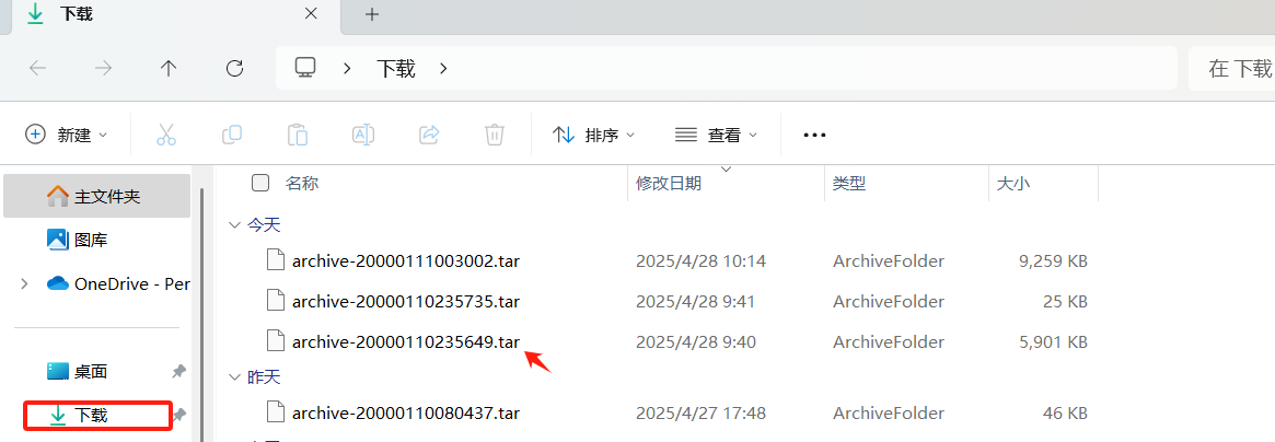 ● 选择需要备份的文件,下载到终端。在电脑下载栏【.tar】后缀的文件,就是已选择备份的数据。