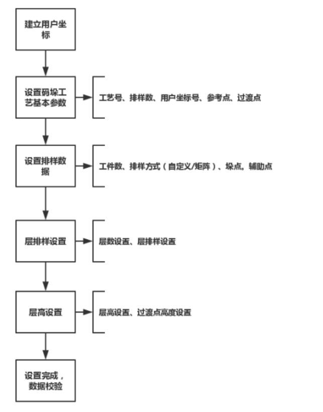 1. 码垛工艺中所有点位的计算均在设定的用户(托盘)坐标系下进行,因此在设定用户坐