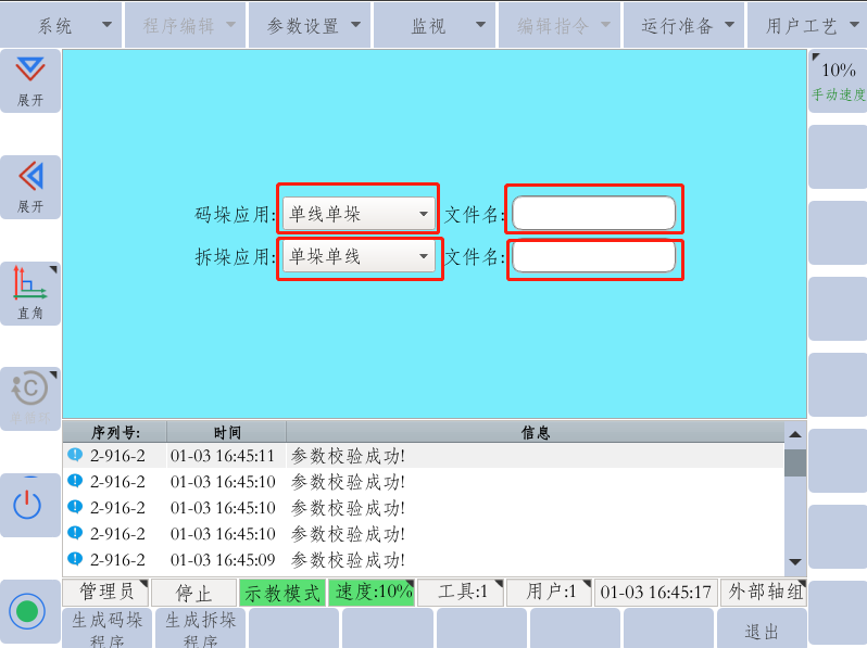 12.  最后确定码垛文件名称,即可生成相应的码垛或者拆垛的JBI文件。