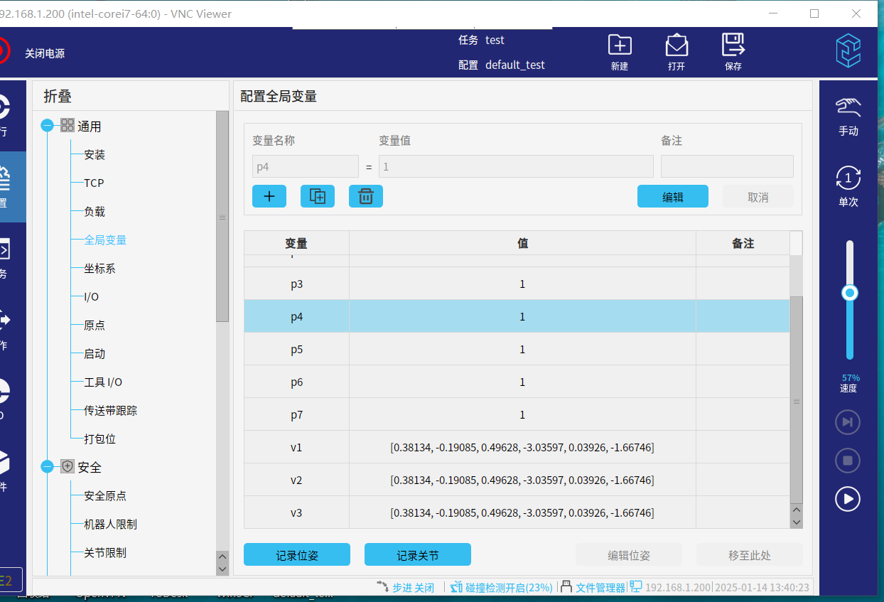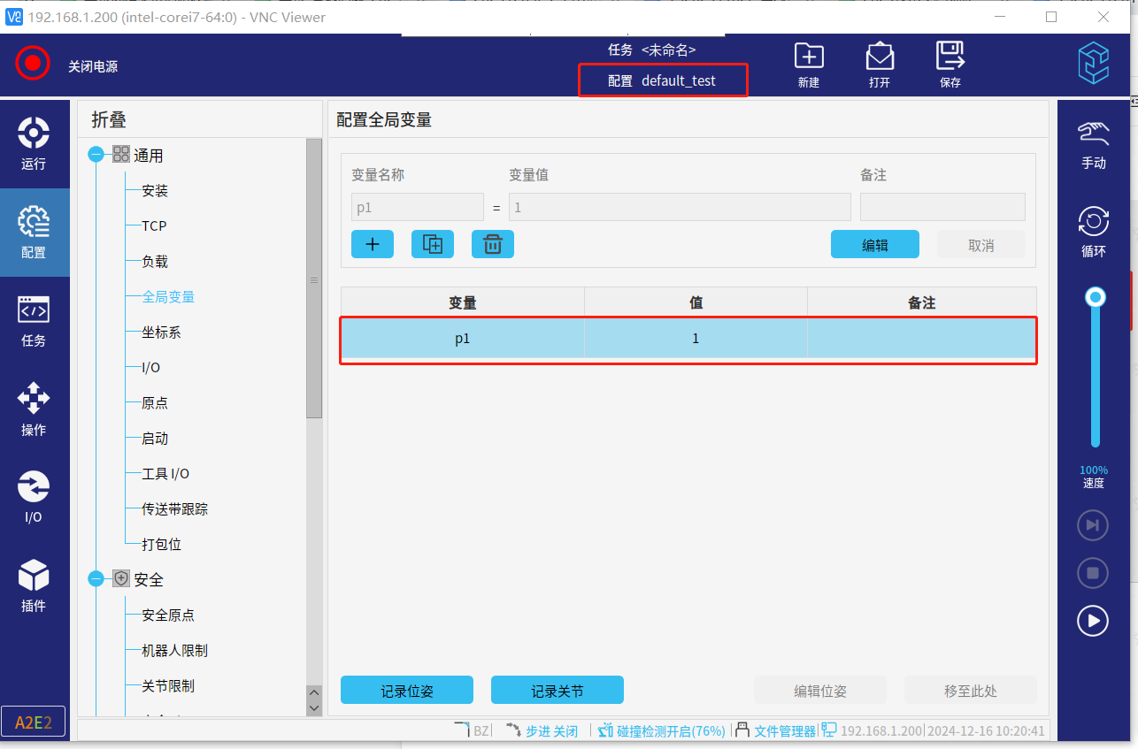 本文档用于在应用中有较多全局变量数量创建需要。示教器中单次只能创建一个全局变量,可通过配置文件中变量文件快速批量创建。
