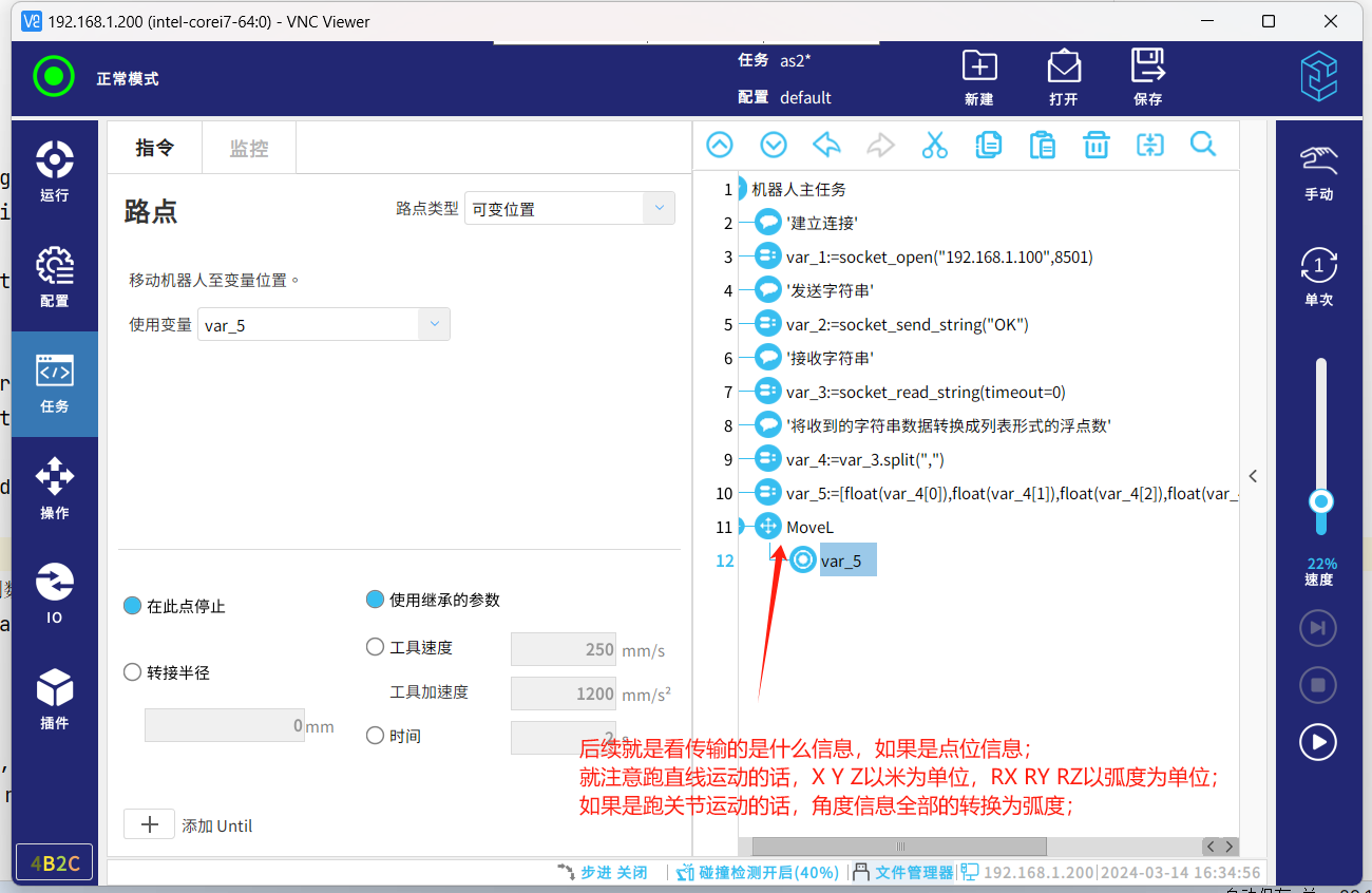 socket通信协议,一种标准的通信协议,同时是目前工业电子设备之间常用的通讯协议,市面上机器人与夹持器,视觉,上位机等通讯大多采用这种通讯方式。以下介绍机器人socket通讯基本的几个指令脚本,传输字符串数据和解析字符串数据。
