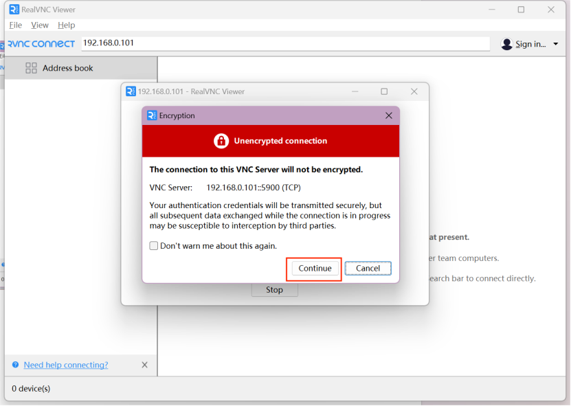 (2) VNC Server 传送一对话窗口至客户端,要求输入连接密码(可能为空),以及存取的 VNC Server 显示装置。