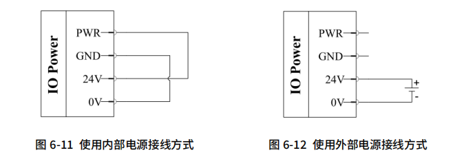 其中“PWR”为内部电源24V 正极,“GND”为内部电源负极,“24V”为所有通用数字 IO正极,