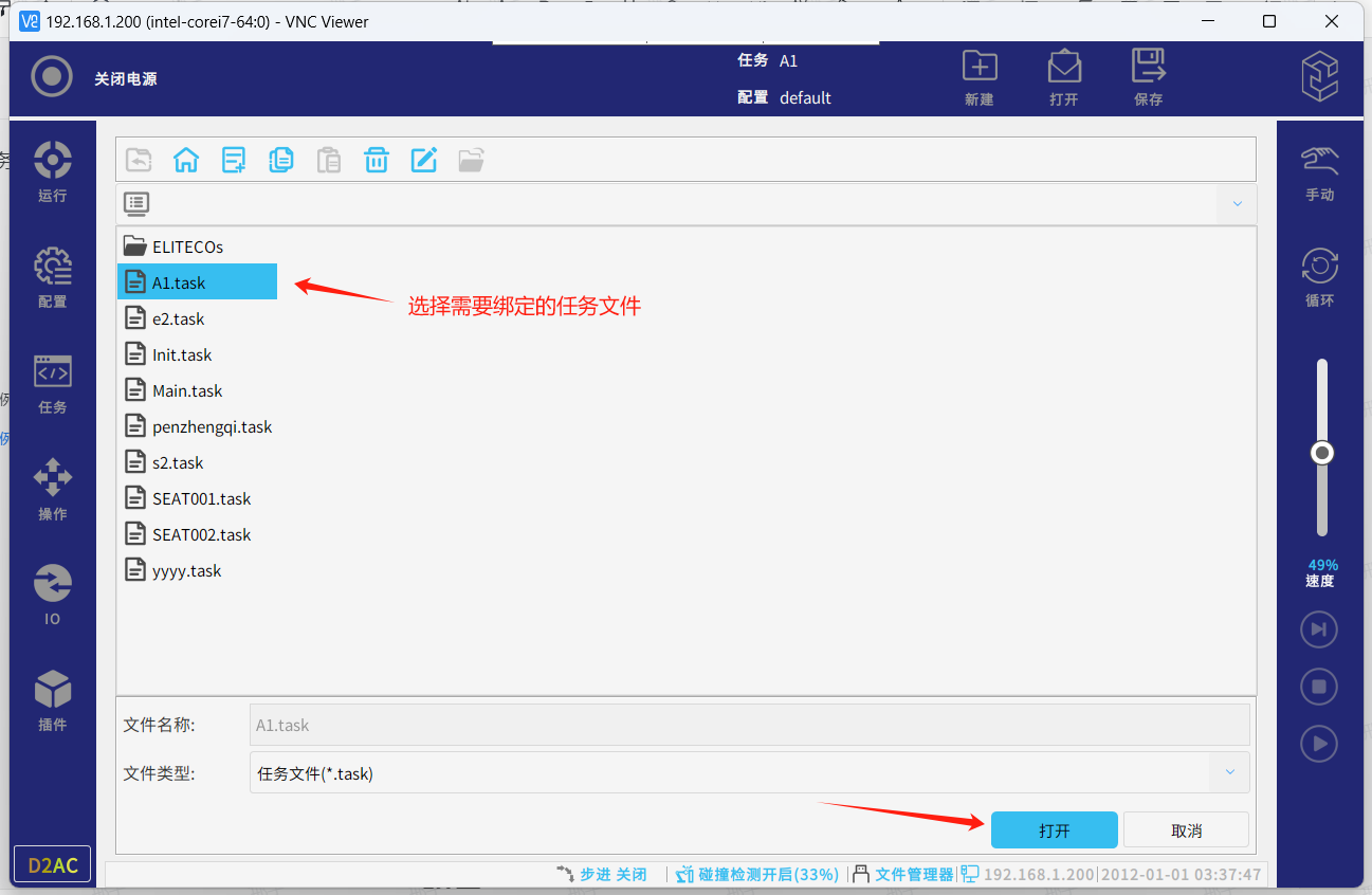 注:不同配置下的任务,在切换时也会连同配置一起切换,但要注意的是在切换不同配置下的任务时,机器人会下电。