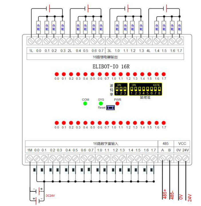 16 路继电器数字量输出(对应数量状态指示灯),输出信号支持NPN/PNP。