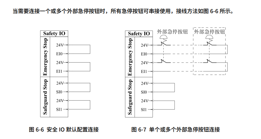 EI0-EI1是急停的两个接口,SI0-SI1是防护停止的两个接口。