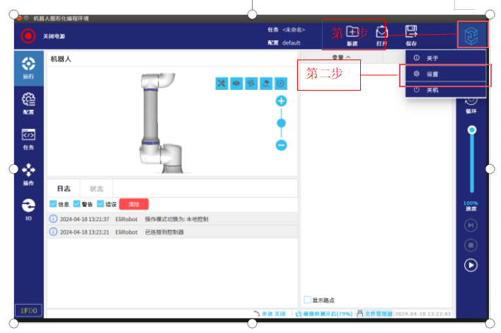 2.1.1.1将u盘插入示教器或者控制柜的USB接口,然后如图-1所示,点击米兰·(milan)中国 图标→设置,就会进入图-2界面。