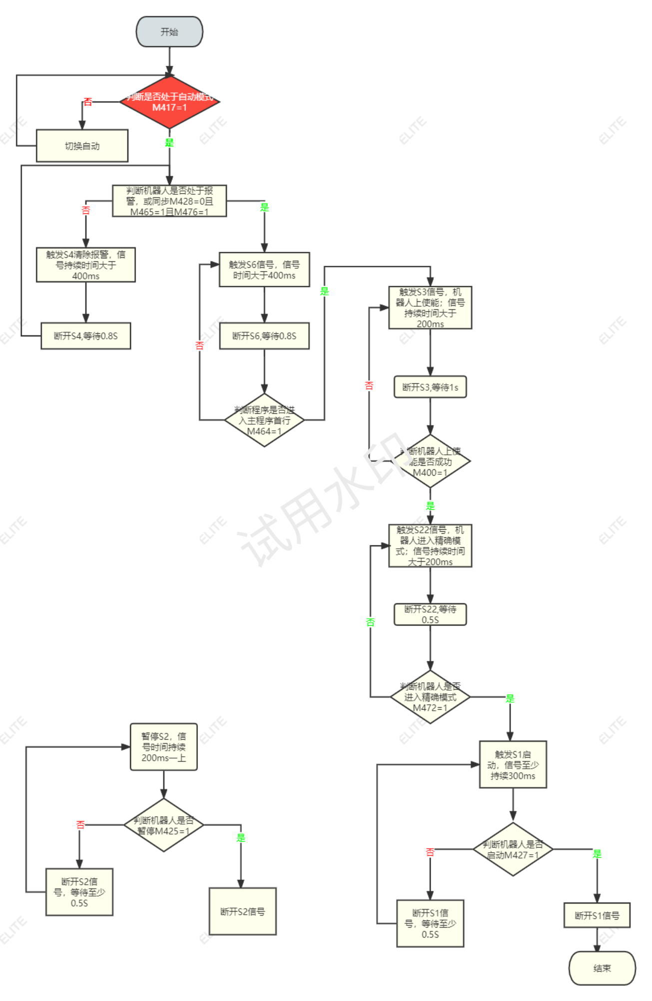 ④判断机器人程序指针是否处于程序首行(M464),按需求可回主程序首行(S6)